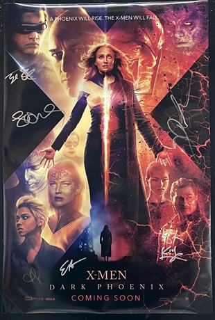 AUTOGRAPHED Double-Crown sized (20"x 30") promo poster for "X-Men Dark Phoenix" (2019).We believe this to have been a specially commissioned poster. Unlike the standard posters for cinema use, this poster is single, not double-sided.