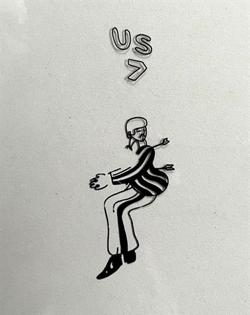 Original animated hand-drawn artwork from The Beatles film "Yellow Submarine" (1968) showing an image of Ringo Starr from the Cavalry charge scene, Ringo with two arrows in his back. This artwork (approx 4 1/4" high) is on an acetate sheet (12 1/2"x 32" approx). This item belonged to the commercial artist Corona Maher who worked at
