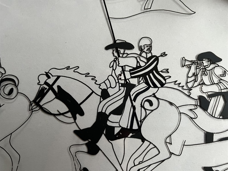 Original animated hand-drawn artwork from The Beatles film "Yellow Submarine" (1968) featuring the scene where Ringo Starr appears in a Cavalry charge, Ringo depicted here with two arrows in his back.This artwork is on two stapled acetate sheets (12 1/2"x 32" approx). This item belonged to the commercial artist Corona Maher who worked at